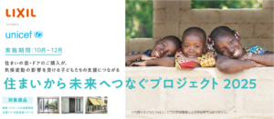 (一般ユーザー様や私たち販売・施工店が直接寄付するのではなく、対象商品の売上げの一部を株式会社LIXILがユニセフへ寄付しています。)