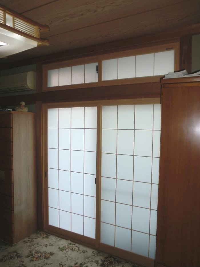 | 和室の障子から インプラス(和紙調ガラス・組子入り)への交換です。 |