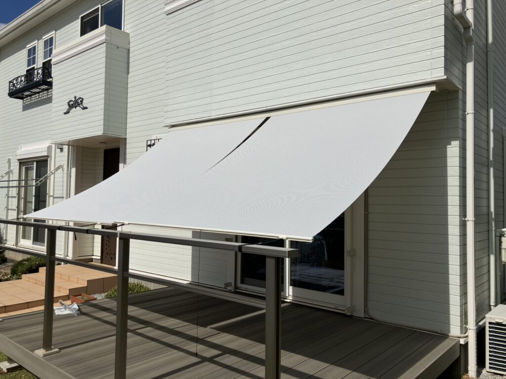 同じくLIXIL製の外付け日よけ「スタイルシェード」と組み合わせて、夏もデッキの活用ができるようにしました。