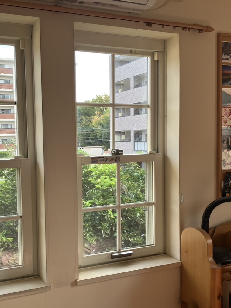 3つ並んでいる窓ですべて開閉することはないとのことでしたので、1カ所だけは今までと同じ上げ下げ窓にし、あと2カ所は開かないFIX窓にしました。