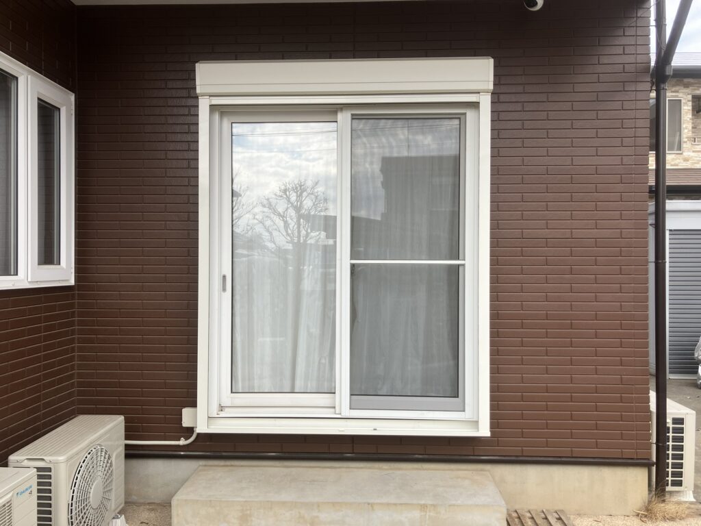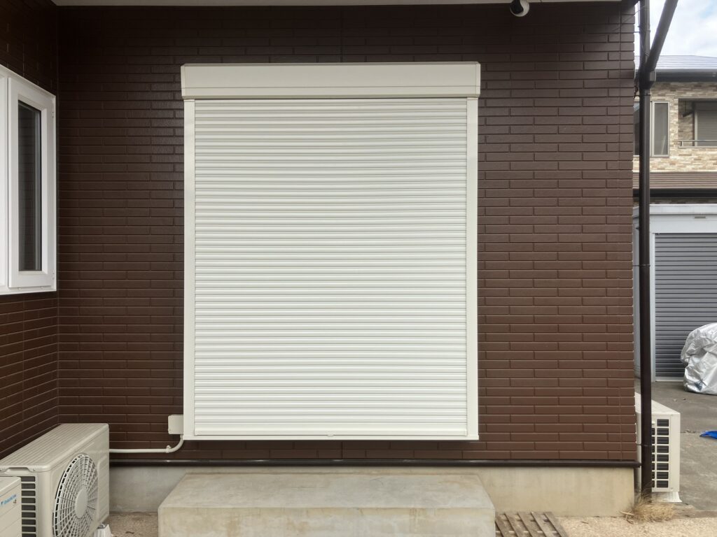 既存の窓に外壁の上から後付けできるLIXILのリフォームシャッターをご提案いたしました。