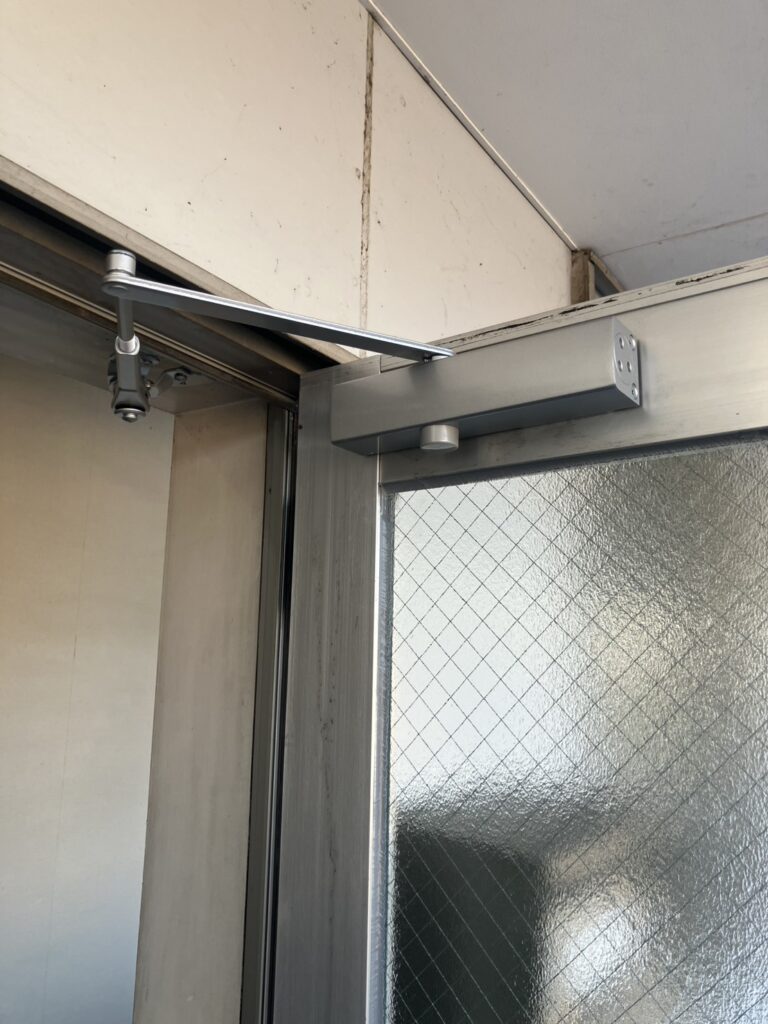 開閉の不具合と異音はドアクローザーの劣化が原因でした。年数も経過していたドアでしたので、ドアクローザーを新しいものに交換しました。